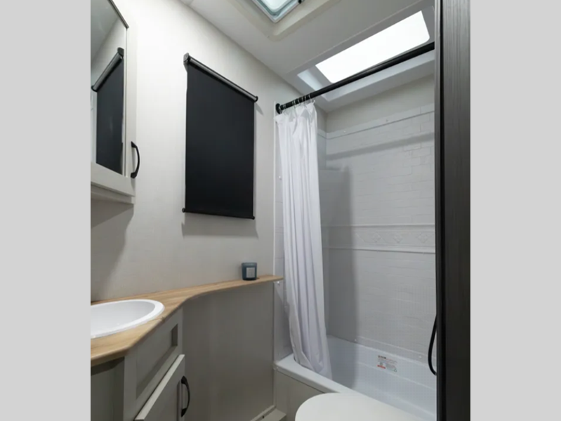 Sleeps 5 Slides 2 Length 28 ft 5 in Ext Width 8 ft Ext Height 11 ft 5 in Interior Color Linen, Carbon Hitch Weight 1144 lbs GVWR 8500 lbs Dry Weight 7365 lbs Cargo Capacity 1135 lbs Fresh Water Capacity 40 gals Grey Water Capacity 33 gals Black Water Capacity 33 gals Number Of Bunks 2 Available Beds Queen Refrigerator Type GE Dual Swing 12V Refrigerator Size 10 cu ft Shower Size 24" x 36" Number of Awnings 1 Water Heater Type On Demand AC BTU 13500 btu TV Info LR 40" 4K LED Smart TV Awning Info 20' Electric w/LED Light Strip and Pitch Adjustment Axle Count 2 Shower Type Tub/Shower Combo Electrical Service 50 amp Similar Floorplans
