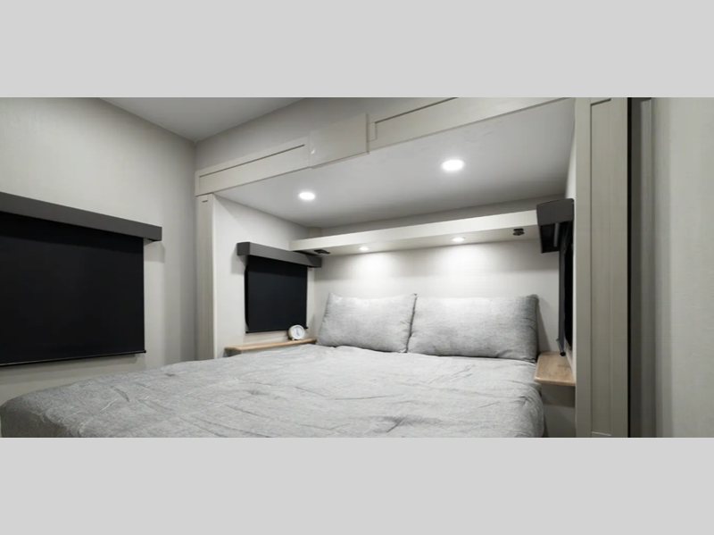 Sleeps 4 Slides 1 Length 34 ft Ext Width 8 ft Ext Height 12 ft 2 in Interior Color Linen, Carbon Hitch Weight 1773 lbs GVWR 11000 lbs Dry Weight 8506 lbs Cargo Capacity 2494 lbs Fresh Water Capacity 40 gals Grey Water Capacity 33 gals Black Water Capacity 33 gals Available Beds Queen Refrigerator Type GE Dual Swing 12V Refrigerator Size 10 cu ft Shower Size 34" x 34" Number of Awnings 1 Water Heater Type On Demand AC BTU 13500 btu TV Info LR 50" 4K Smart LED TV Awning Info 20' Electric w/LED Light Strip and Pitch Adjustment Axle Count 2 Shower Type Radius Electrical Service 50 amp Similar Floorplans