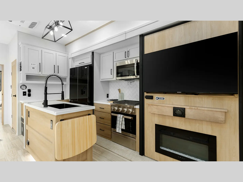 Sleeps 4 Slides 3 Length 39 ft 11 in Ext Width 8 ft 5 in Ext Height 13 ft 4 in Hitch Weight 1510 lbs GVWR 13510 lbs Dry Weight 11774 lbs Cargo Capacity 1736 lbs Fresh Water Capacity 50 gals Grey Water Capacity 104 gals Black Water Capacity 104 gals Tire Size 16" Furnace BTU 40000 btu Available Beds King Refrigerator Type Stainless Steel 12V Refrigerator Size 19.6 cu ft Cooktop Burners 3 Number of Awnings 1 LP Tank Capacity 30 lbs Water Heater Capacity 60000 gal Water Heater Type On Demand Tankless AC BTU 30000 btu TV Info LR 50" Flat Screen TV Awning Info 19' Electric with LED Light Strip Axle Count 2 Washer/Dryer Available Yes Number of LP Tanks 2 Shower Type Standard Similar Floorplans