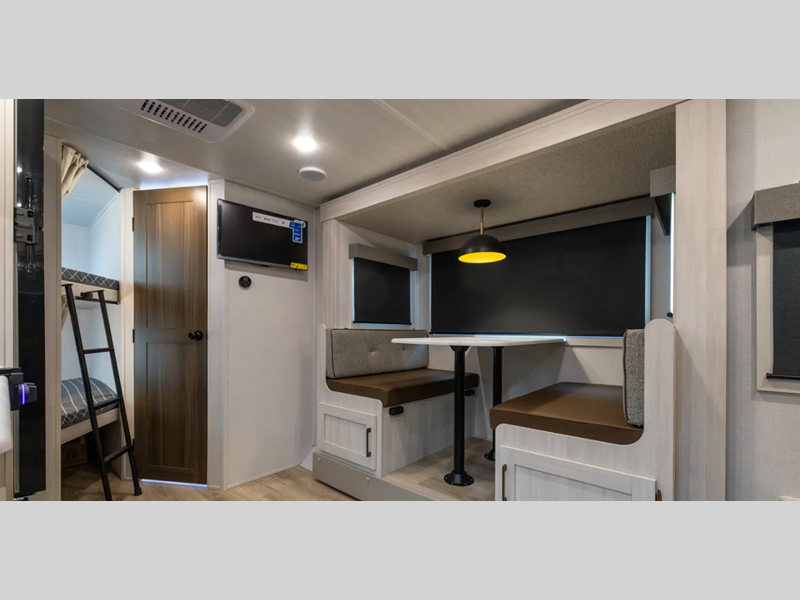 Sleeps 7 Slides 1 Length 23 ft 7 in Ext Width 7 ft 4 in Ext Height 10 ft 9 in Hitch Weight 498 lbs GVWR 5698 lbs Dry Weight 4100 lbs Cargo Capacity 1598 lbs Fresh Water Capacity 30 gals Grey Water Capacity 30 gals Black Water Capacity 30 gals Number Of Bunks 2 Available Beds Murphy Bed Refrigerator Type 12V Black Glass Refrigerator Size 10 cu ft Convection Cooking Yes Cooktop Burners 2 Number of Awnings 1 Water Heater Type Tankless AC BTU 15000 btu TV Info LR HD TV Awning Info 15' Electric w/LED Light Strip Axle Count 2 Shower Type Standard Electrical Service 30 amp Solar Wattage 200 watts Similar Floorplans